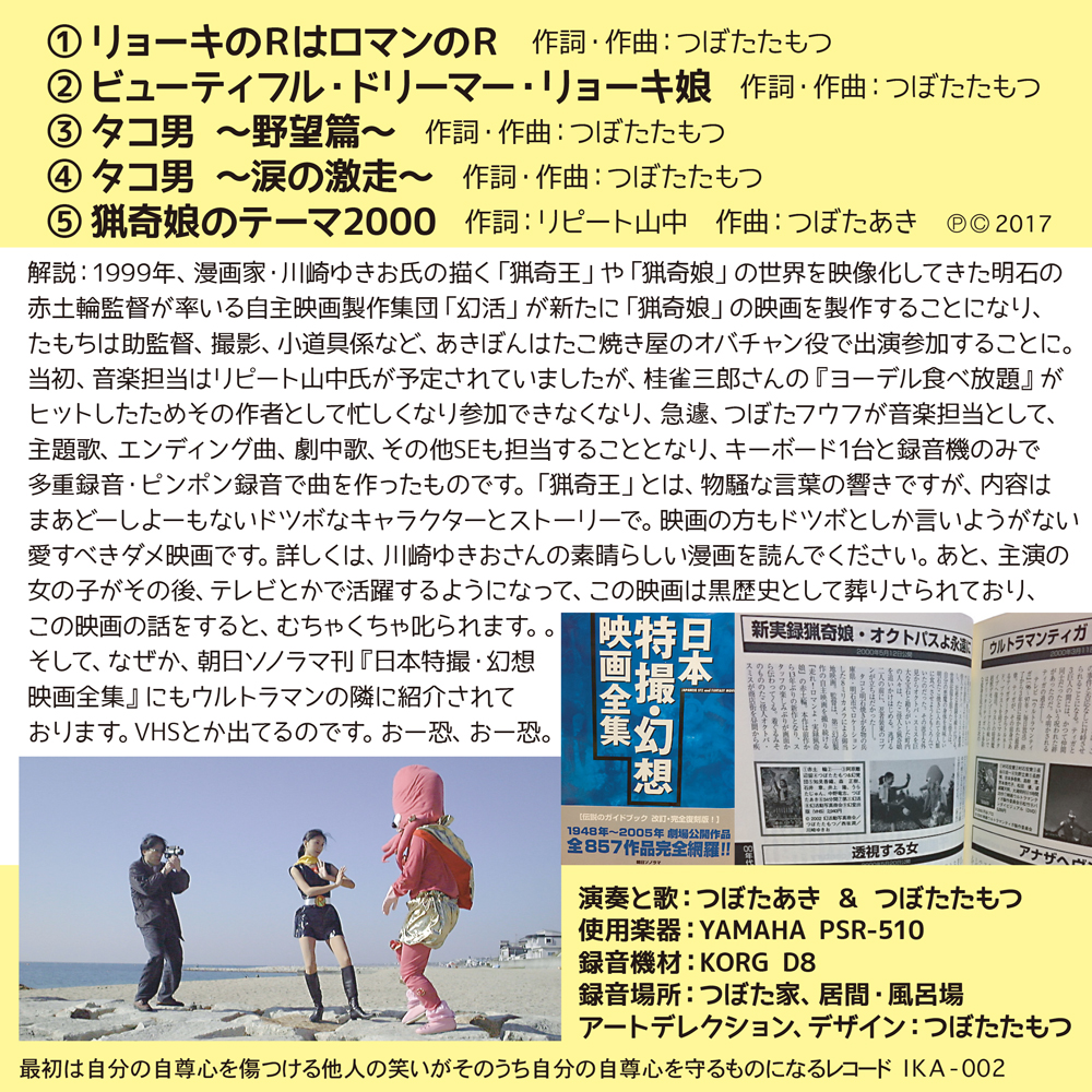 あきぼん&たもち『新実録猟奇娘・オクトパスよ永遠に サウンドトラック』 5曲入りCD / 自主制作 / 非売品 / 1999年